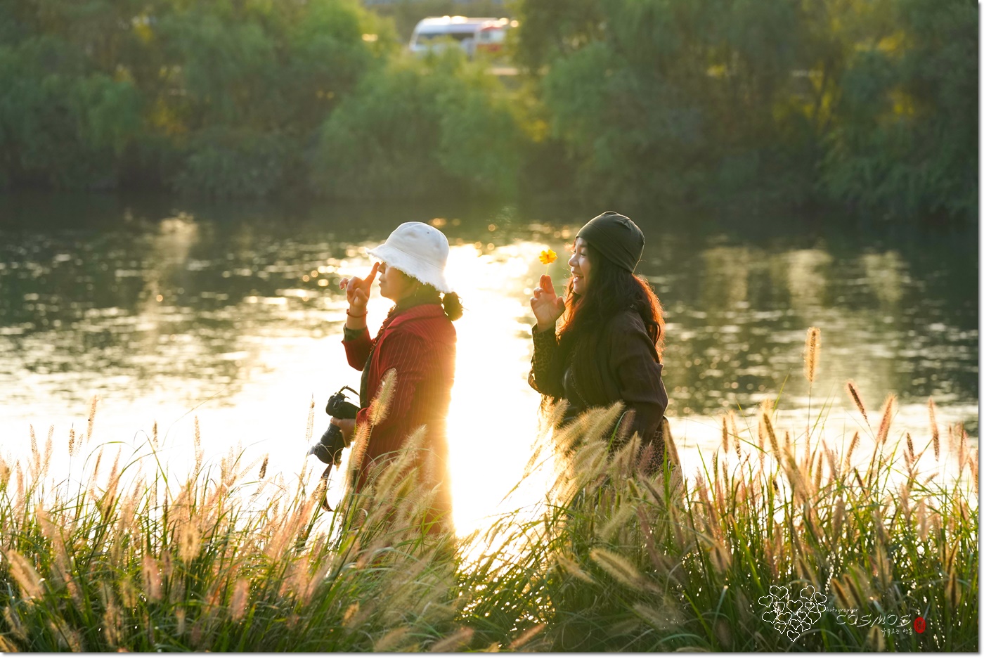 햇살이 비치는 강을 조명 삼아 아름다운 풍경을 담아본다.